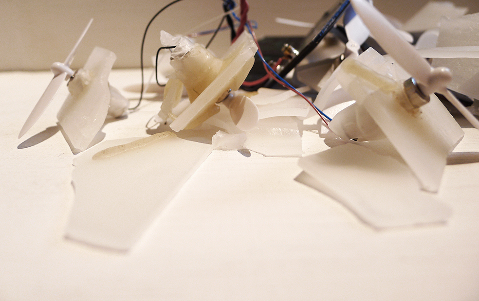 For the project I created several drones whose structure is made of wax. The motors that would allow the drones to fly are powered by solar-cells without any extra control chips.